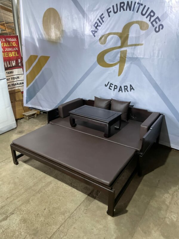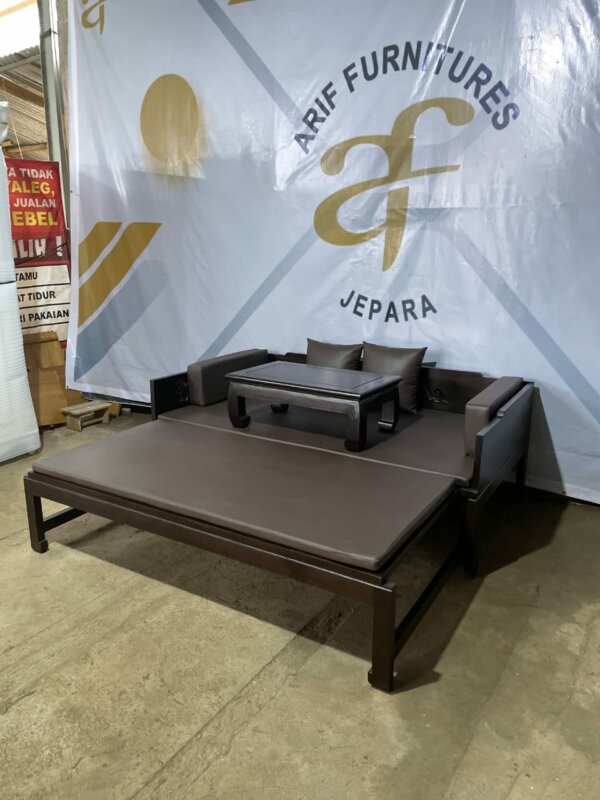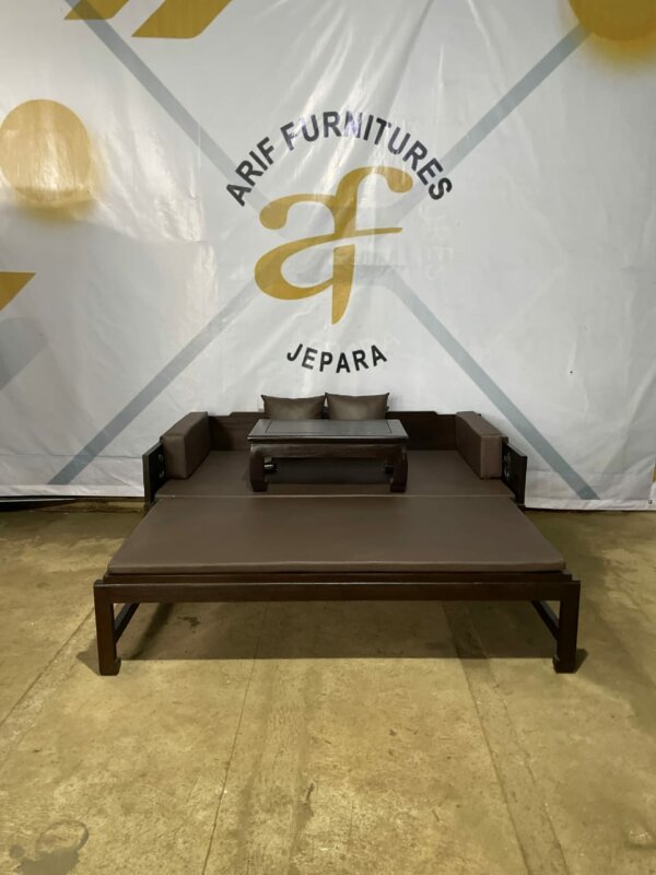 Desain minimalis yang diusung membuat kursi bale-bale ini mudah dipadukan dengan berbagai gaya interior, baik modern maupun tradisional. Dengan garis-garis bersih dan bentuk yang simpel, kursi ini menghadirkan keanggunan yang tidak berlebihan namun tetap memikat. Ketahanan kayu jati menjamin bahwa kursi ini tidak hanya indah, tetapi juga awet untuk digunakan dalam jangka panjang.