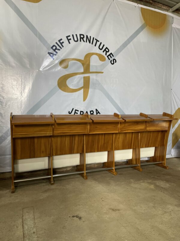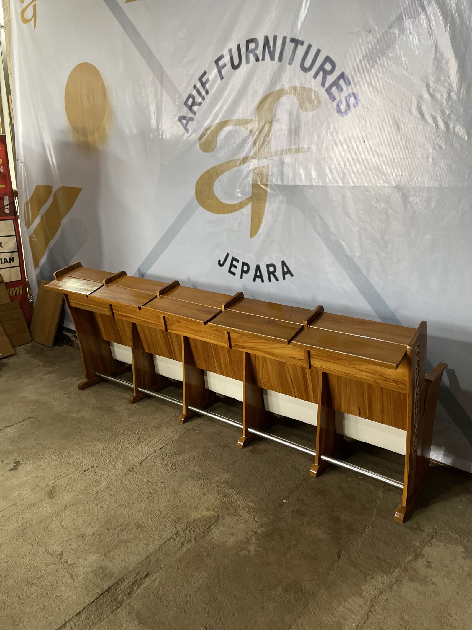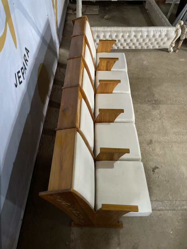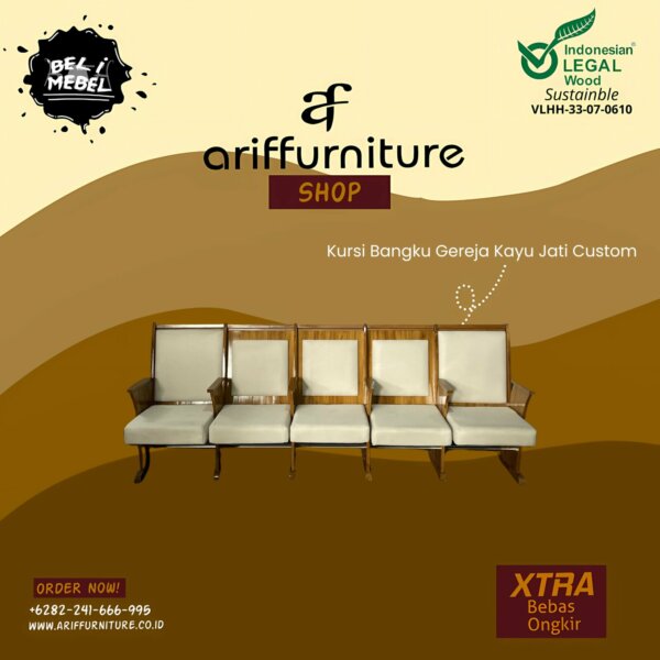 Pilihan ideal untuk menciptakan suasana ibadah yang nyaman dan penuh makna. Terbuat dari kayu jati berkualitas tinggi, kursi ini tidak hanya menawarkan kekuatan dan daya tahan yang luar biasa, tetapi juga estetika yang elegan. Desain custom memungkinkan Anda untuk menyesuaikan ukuran dan bentuk bangku sesuai dengan kebutuhan ruang gereja, memberikan kesan yang lebih personal dan harmonis.