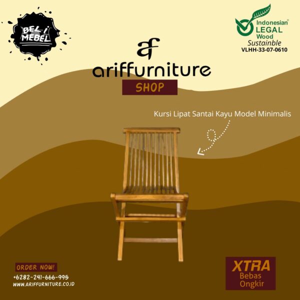 Dengan segala kelebihan yang dimilikinya, kursi lipat santai kayu jati model minimalis menjadi pilihan yang cerdas bagi mereka yang menginginkan furnitur yang tidak hanya praktis tetapi juga indah secara visual. Dengan menambahkan sentuhan alami kayu jati ke dalam ruang hidup, Anda tidak hanya menciptakan suasana yang hangat dan ramah, tetapi juga memberikan ruang untuk kesenangan minimalis yang abadi.