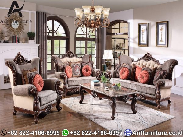 Kursi sofa tamu jepara jati ukir classic – Produk furniture kursi tamu dengan design classic kekinian yang paling mewah dan menawan. Produk Kursi Tamu Ukir-pahatan Kekinian Classic ini tentu saja akan pas untuk diaplikasikan selaku kursi tamu di rumah, ruangan keluarga atau sebagai kursi di loby hotel berbintang. Dibuat dengan memakai material kayu mahoni opsi bermutu, produk ini benar-benar kuat dan bertahan lama. Ukir-pahatan ciri khas furniture jepara teraplikasi pada Kursi Tamu Ukir-pahatan Jepara Kekinian yang membuat terlihat prima dan menarik. Dapatkan produk Kursi Sofa Tamu Jepara Jati Ukir Classic ini hanya di Arif Furniture mebel nya orang Jepara.