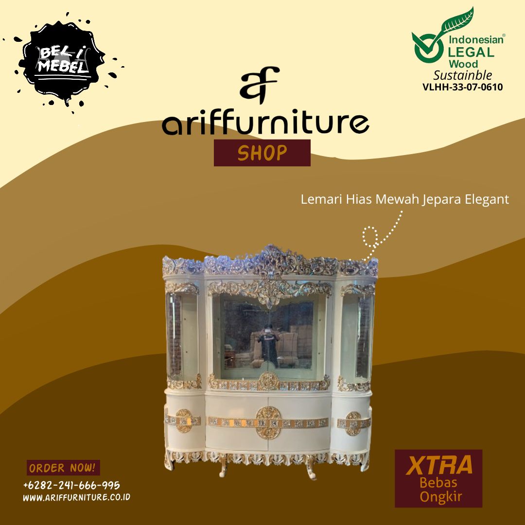 PT. Arif Furnitures Jepara menawarkan beragam pilihan produk furniture Jepara seperti katalog gambar produk Lemari Hias Mewah Jepara Elegant Duco, untuk melihat desain & model lain terkomplet dengan harga murah baca di sini : Lemari Hias Mewah Luxury Carving Elegant. Pembelian dan pemesanan produk furniture Jepara dari kami lewat cara online atau offline gampang, nyaman dan aman bergaransi.