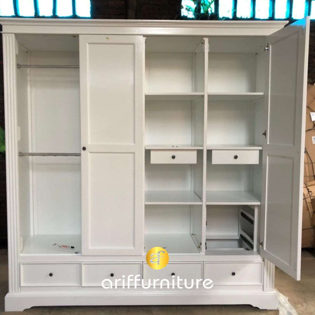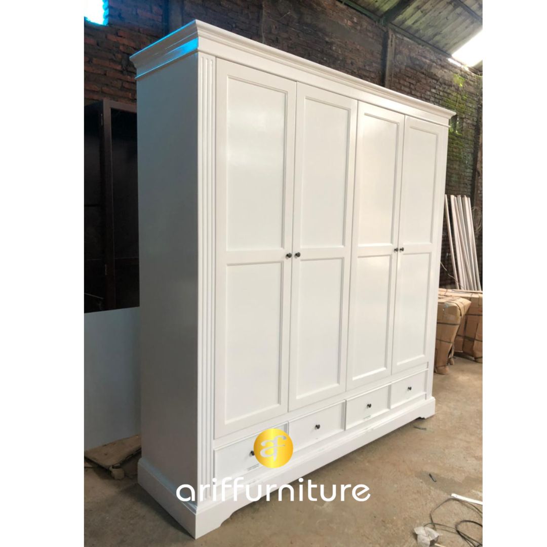 PT.Arif Furniture menawarkan beragam pilihan produk furniture jepara seperti katalog gambar produk lemari pakaian warna putih 4 pintu, untuk melihat desain & model lain terkomplet dengan harga murah baca di sini : Lemari Pakaian Minimalis Kayu Jepara. Pembelian dan pemesanan produk furniture jepara dari kami Arif Furniture lewat cara online atau offline gampang, nyaman dan aman bergaransi.