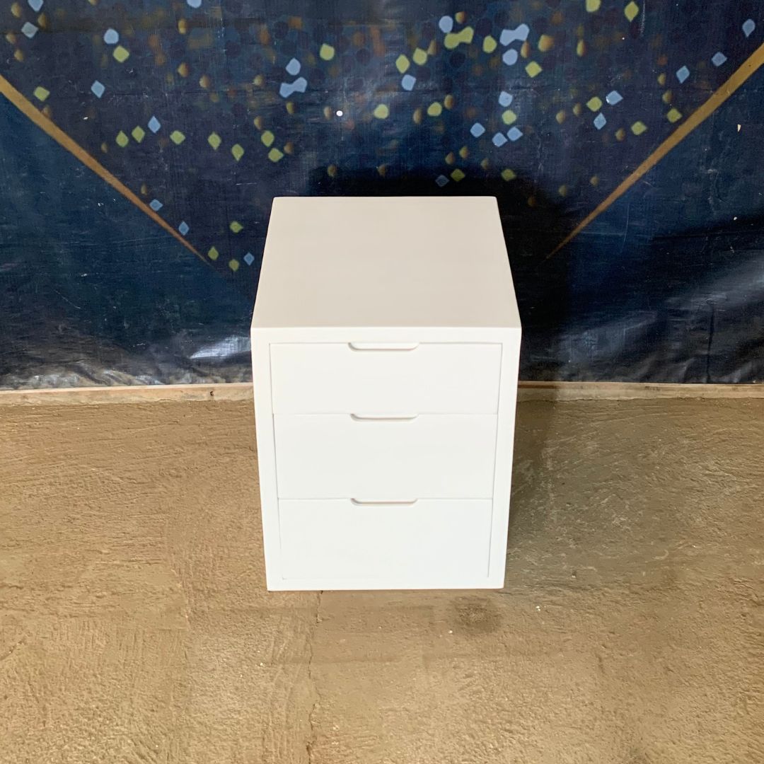 Dilengkapi dengan 3 laci, memungkinkan Anda menyimpan barang-barang kecil seperti buku, lampu tidur, atau aksesori pribadi dengan rapi. Desain yang bersih dan tanpa banyak ornamen juga membuatnya mudah dipadukan dengan berbagai gaya dekorasi, dari skandinavia hingga kontemporer.