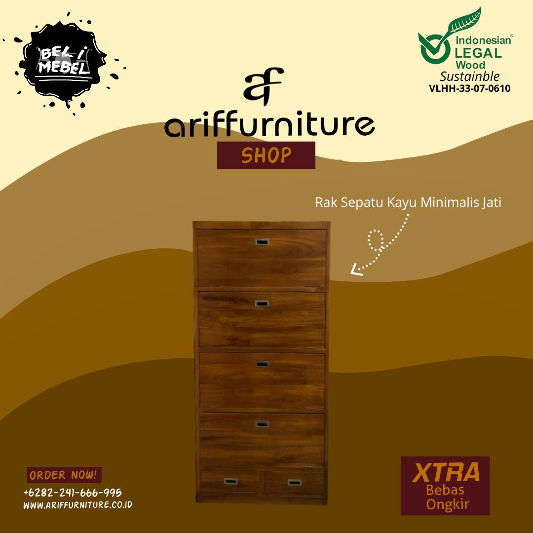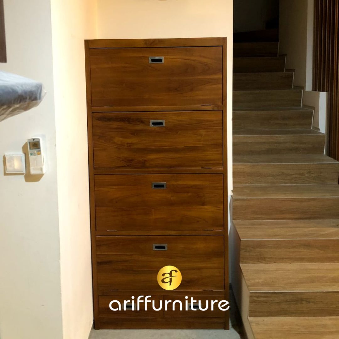 Lemari rak sepatu merupakan salah satu elemen penting dalam menjaga kebersihan dan keteraturan ruangan. Dengan perkembangan desain interior yang semakin berkembang, lemari rak sepatu kayu minimalis jati menjadi salah satu pilihan yang diminati untuk menyimpan sepatu dengan gaya yang elegan dan fungsional, Bahan kayu jati dipilih karena kekuatan, keindahan alaminya, dan keawetannya yang terkenal.