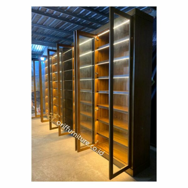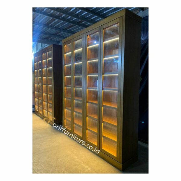 Lampu yang dipasang di dalam lemari tidak hanya menambah sentuhan dekoratif yang menawan, tetapi juga memberikan penerangan tambahan saat mengambil atau menyimpan sepatu. Tidak hanya berfungsi sebagai tempat penyimpanan sepatu, tetapi juga menjadi titik fokus dalam ruangan berkat keindahan dan kehangatannya yang khas.