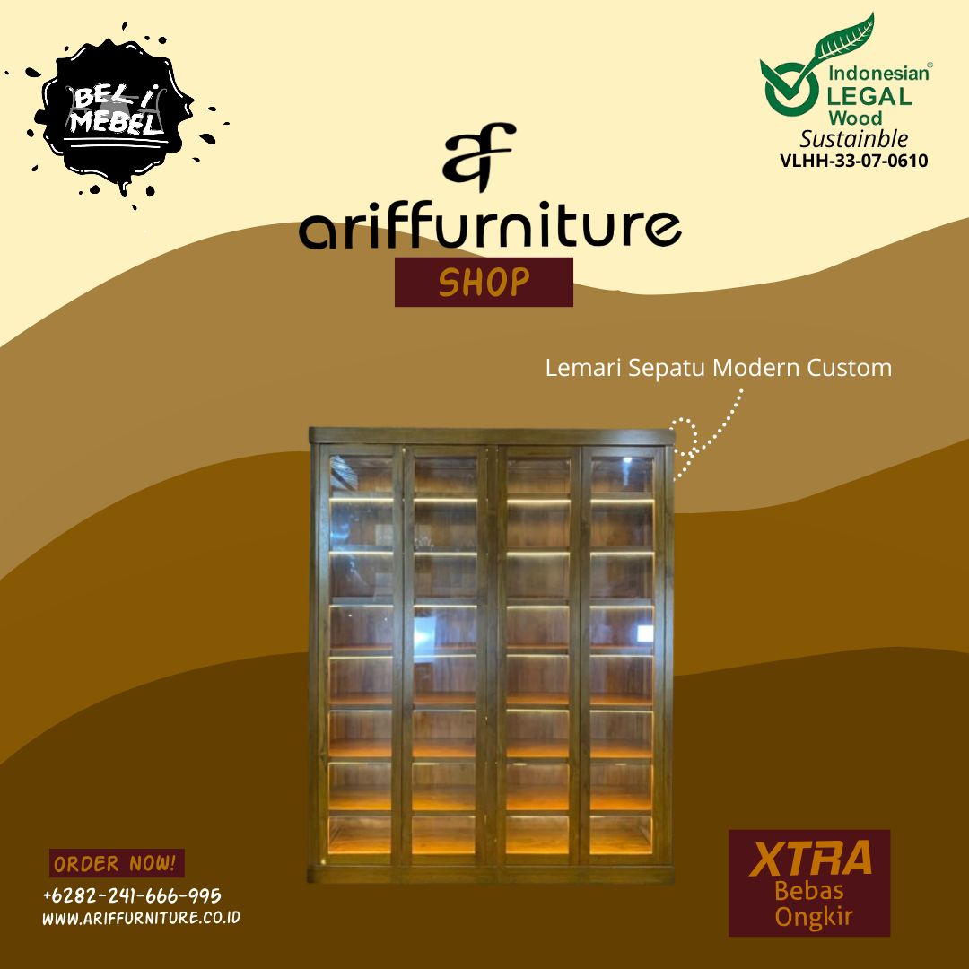 PT. Arif Furnitures Jepara menawarkan beragam pilihan produk furniture Jepara seperti katalog gambar produk Lemari Sepatu Minimalis Modern Kayu Jati Custom, untuk melihat desain & model lain terkomplet dengan harga murah baca di sini : Lemari Rak Sepatu Kayu Minimalis Jati. Pembelian dan pemesanan produk furniture Jepara dari kami lewat cara online atau offline gampang, nyaman dan aman bergaransi.