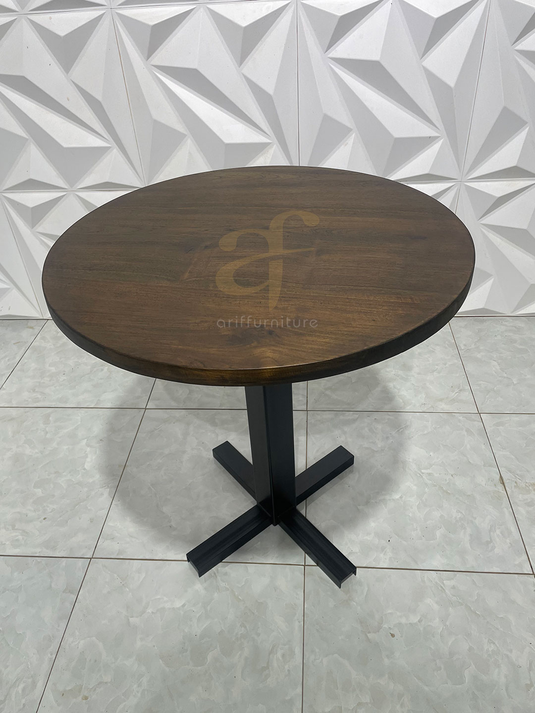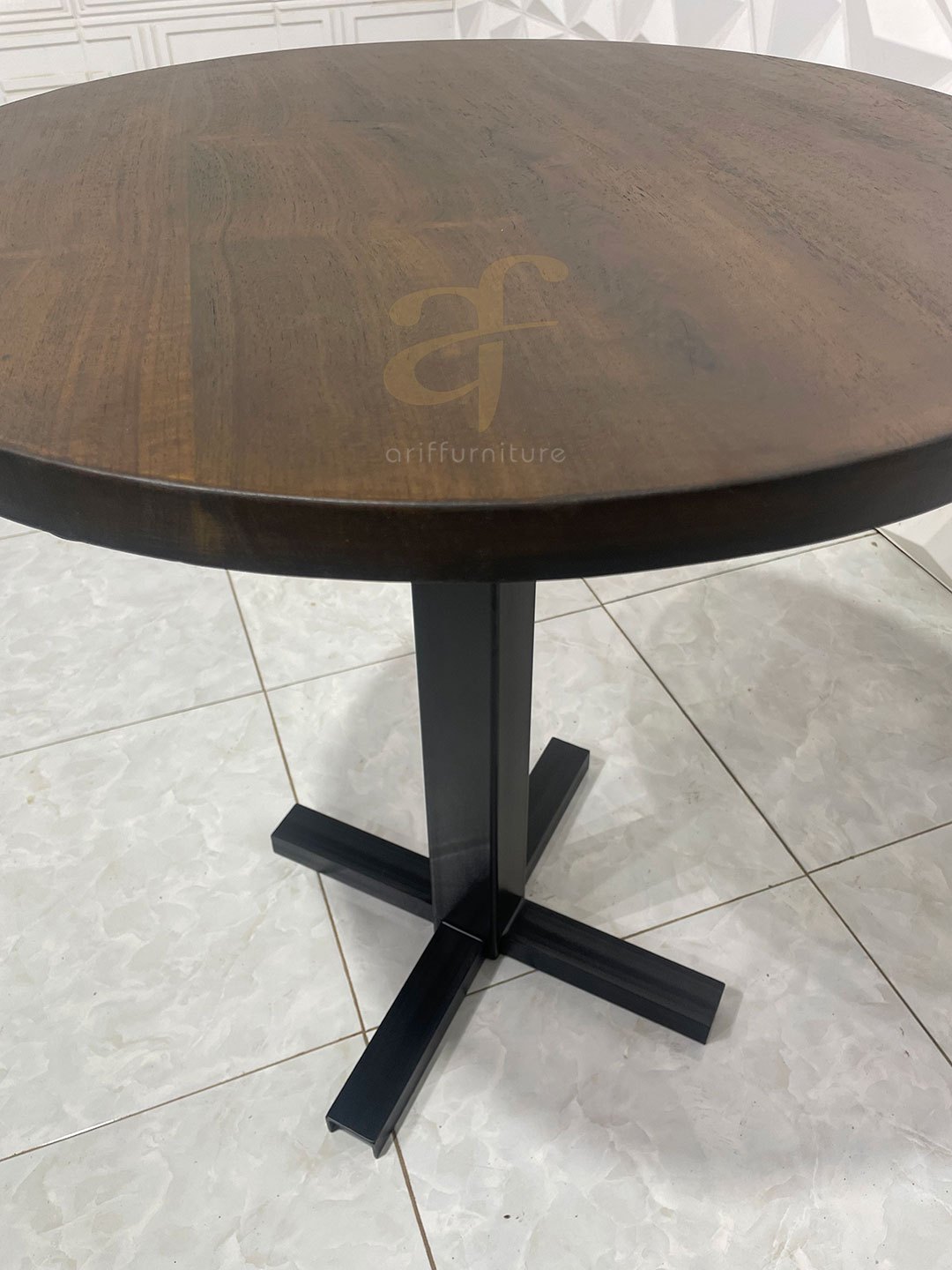 Harga Meja Cafe Bundar Kayu Jati Kaki Besi Furniture Industrial