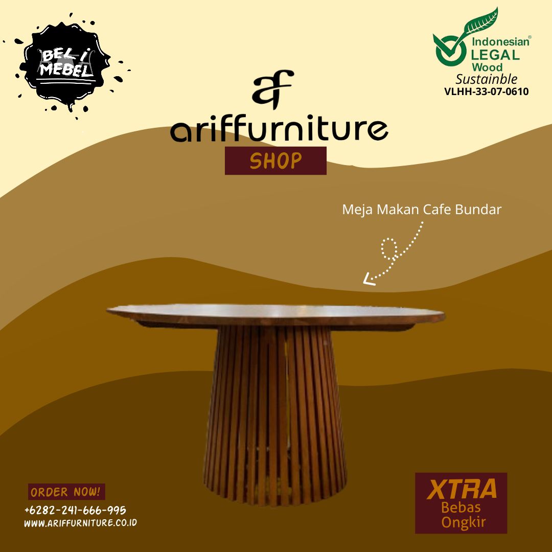 PT. Arif Furnitures Jepara menawarkan beragam pilihan produk furniture Jepara seperti katalog gambar produk Meja Makan Cafe Bundar Kayu Solid, untuk melihat desain & model lain terkomplet dengan harga murah baca di sini : Meja Makan Cafe Minimalis Natural. Pembelian dan pemesanan produk furniture Jepara dari kami lewat cara online atau offline gampang, nyaman dan aman bergaransi.