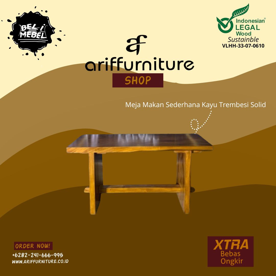 PT. Arif Furnitures Jepara menawarkan beragam pilihan produk furniture Jepara seperti katalog gambar produk Meja Makan Sederhana Kayu Trembesi Solid, untuk melihat desain & model lain terkomplet dengan harga murah baca di sini : Meja Makan Minimalis Terbaru Suar Wood. Pembelian dan pemesanan produk furniture Jepara dari kami lewat cara online atau offline gampang, nyaman dan aman bergaransi.