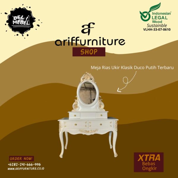 Harga Meja Rias Ukir Klasik Duco Putih Terbaru