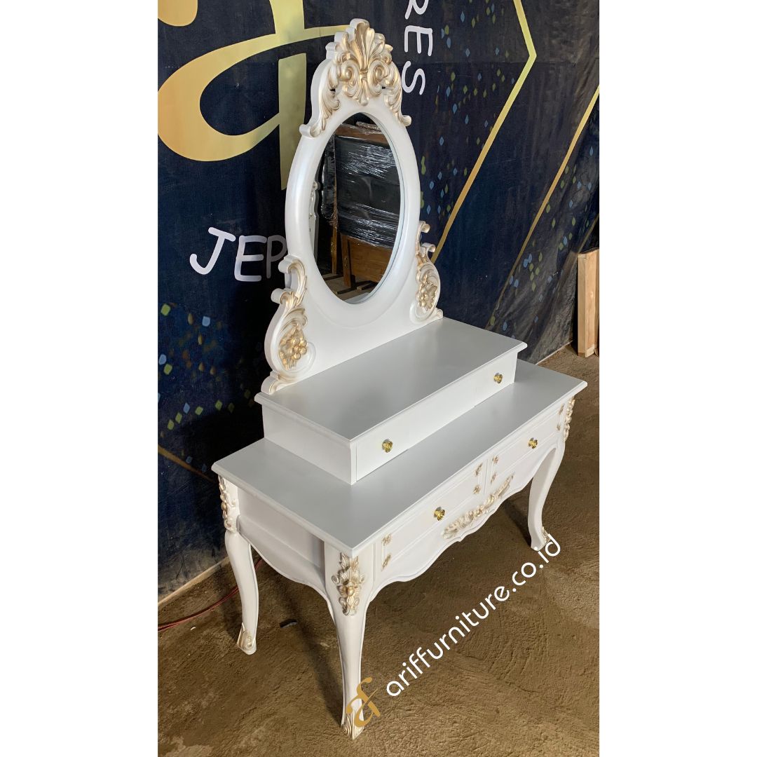 Meja Rias Ukir Klasik Duco Putih Terbaru