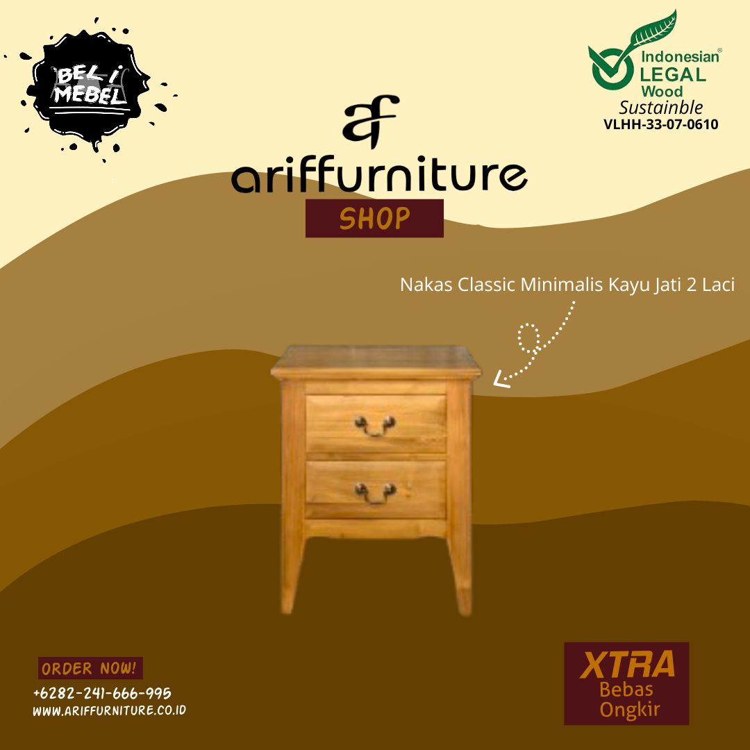 PT. Arif Furnitures Jepara menawarkan beragam pilihan produk furniture Jepara seperti katalog gambar produk Nakas Classic Minimalis Kayu Jati 2 Laci, untuk melihat desain & model lain terkomplet dengan harga murah baca di sini : Nakas Minimalis Lemari Arsip Kayu Jati 2 Laci AF-30. Pembelian dan pemesanan produk furniture Jepara dari kami lewat cara online atau offline gampang, nyaman dan aman bergaransi.