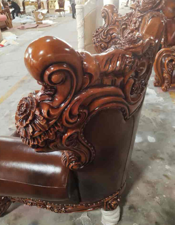 Sofa kursi ruang tamu mewah modern dari Arif Furniture yang menggambarkan ide Kenyamanan, Keelokan, Seni Ukir dan Kemewahan dalam ruang tamu Anda dan dibuat secara eksklusif pada tangan master. Sofa kursi ruang tamu mewah modern kelas tinggi bawa keelokan istana ke beberapa rumah dengan kerajinan pengrajin kami dan dibuat berbahan kayu jati/mahoni dengan warna finising kualitas terhebat yang paling tahan lama sampai beberapa puluh tahun.